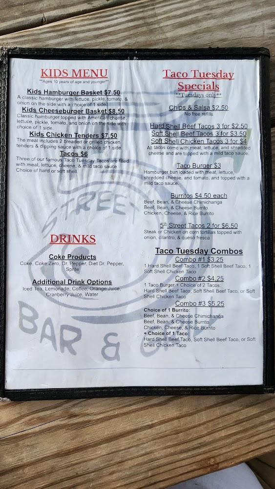 Welcome to 5th Street Bar & Grill, your go-to spot in Pittsburg, KS, for a laid-back dining experience! Nestled at 111 W 5th St, our grill offers a delightful menu featuring local specialties and a variety of cocktails and beers. Whether you're here for lunch, a solo dinner, or a night out with friends, enjoy quick service in a vibrant atmosphere. With amenities like takeout, delivery, and late-night dining, we cater to all your cravings. Don't miss our happy hour deals and sports shows for a fun-filled evening. Join us and discover why 5th Street is a favorite among locals and students alike!